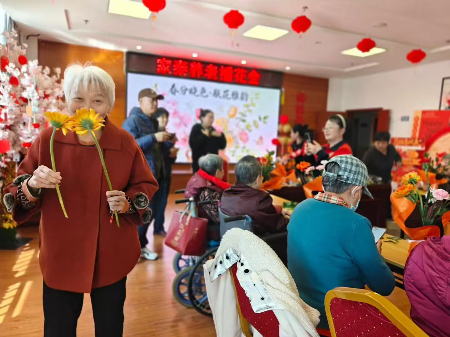 活动现场花香四溢,长辈们手中的花束形态各异,却都承载着满满的幸福与满足。亿生团队将长辈们完成的作品一一拍照留念,并告诉他们可以将花束摆放在房间,让花香陪伴每一天。